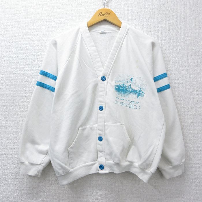 L/古着 長袖 スウェット カーディガン メンズ 90年代 90s サンフランシスコ ラグラン USA製 白他 26mar23