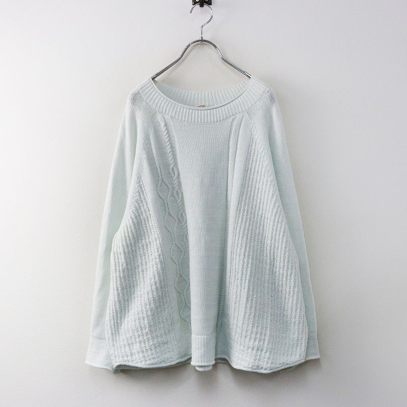 玉木新雌 タマキニイメ tamaki niime PO knit ポニット プルオーバー\ライトブルー ケーブル セーター ワイド【2400014917659】