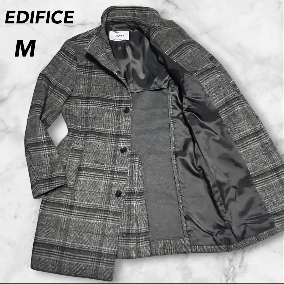 【美品】EDIFICE カシミアブレンド ウールコート チェック M