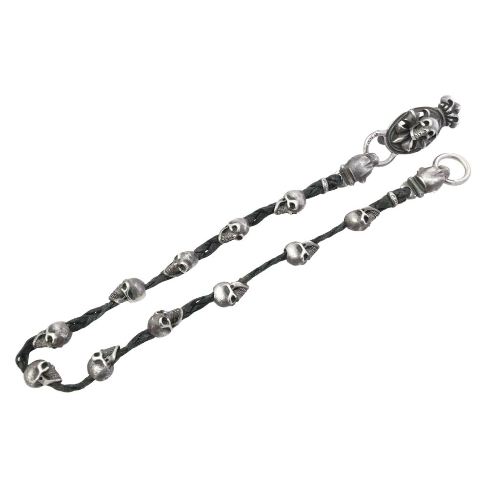 GABOR ガボール Gaboratory ガボラトリー マリア ギャランティ付属 スカルオンクロスオーバルクラウンキーパー 2パンサーヘッド 11スカル ブレイデッドレザー ウォレットチェーン シルバー系【中古】