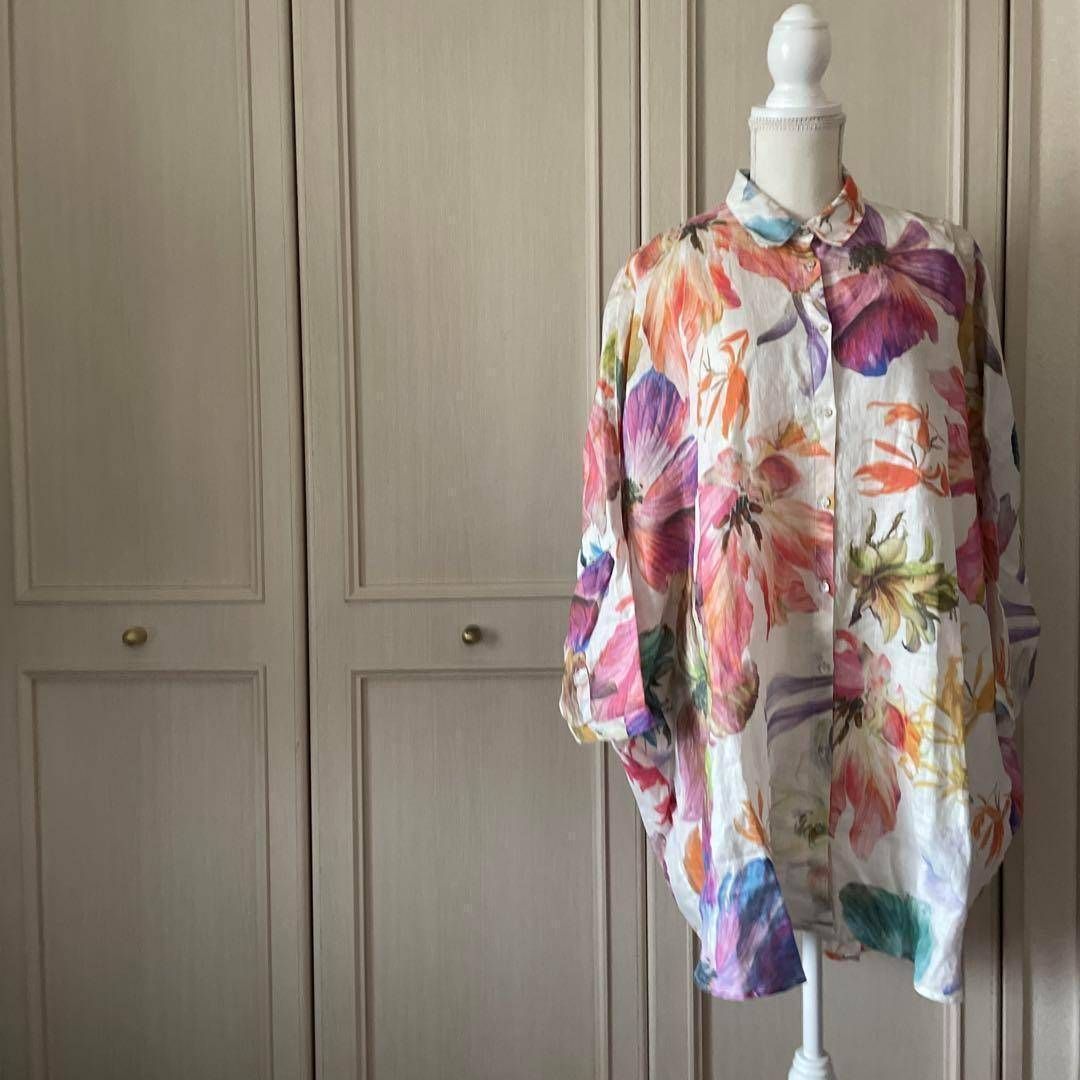 39 120%lino 花柄 リネン LINEN 麻 総柄 ブラウス シャツ トップス レディース blouse shirt Tops ladies ワンピース 麻 長袖 大きいサイズ XL マルチカラー お呼ばれ デート オフィスカジュアル 食事会 可愛い
