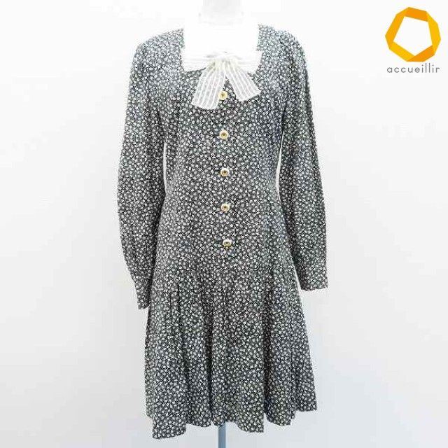 キミジマ kimijima ヴィンテージ ワンピース ロング 半袖 総柄 リボン レディース [a1007256]