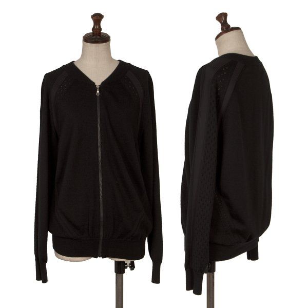タオtao ウールポリデザイン編みジップアップニットカーディガン 黒M