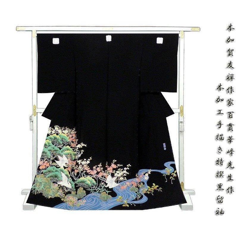 ※記念感謝祭【仕立無料】本加賀友禅巨匠百貫華峰先生作☆特撰松竹梅祝鶴流水図☆本加工手描き黒留袖(10008693)