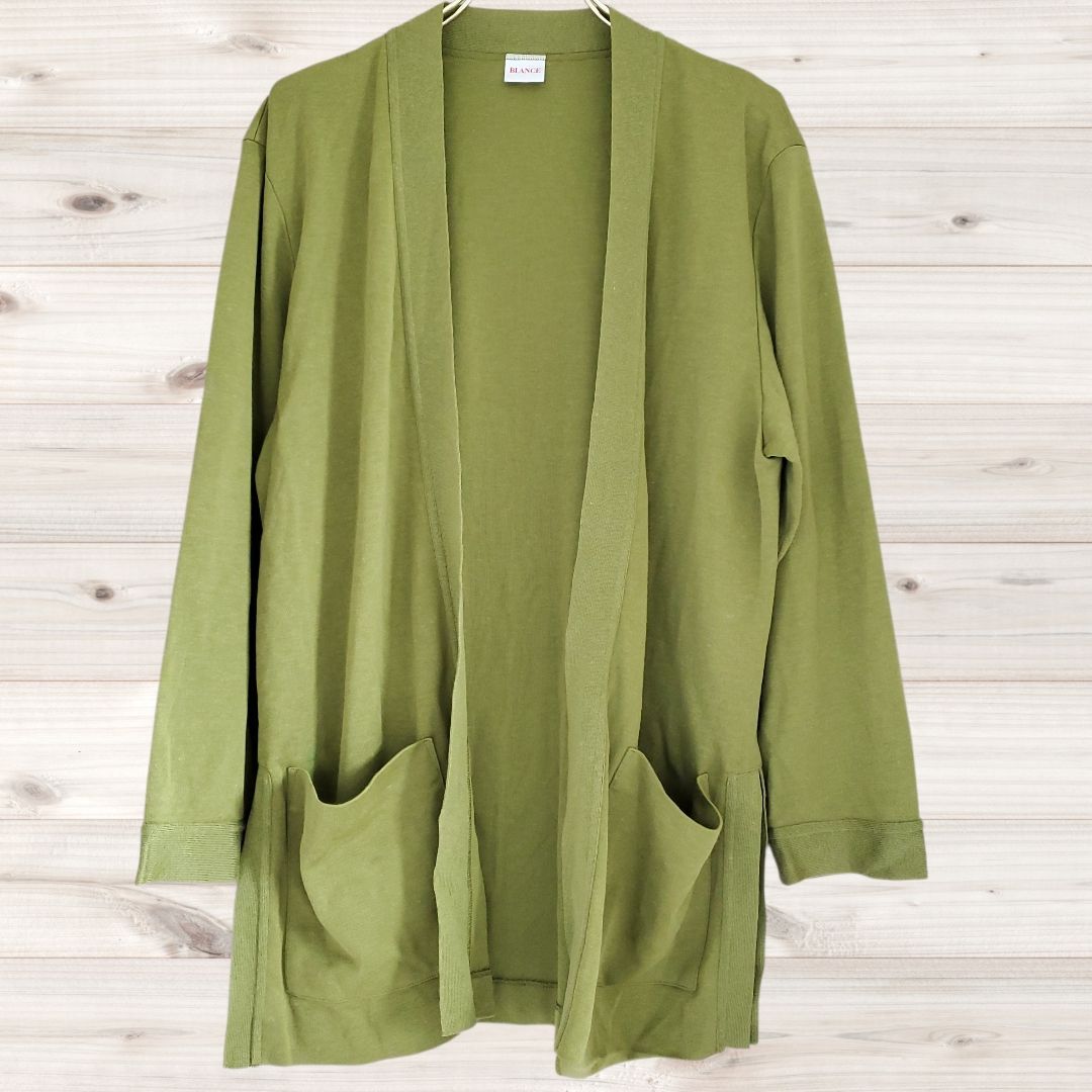 B1992 バランス BLANCE カーディガン 長袖 羽織 グリーン/緑系 リネン 麻 無地 ポケット ワールド オープンフロント