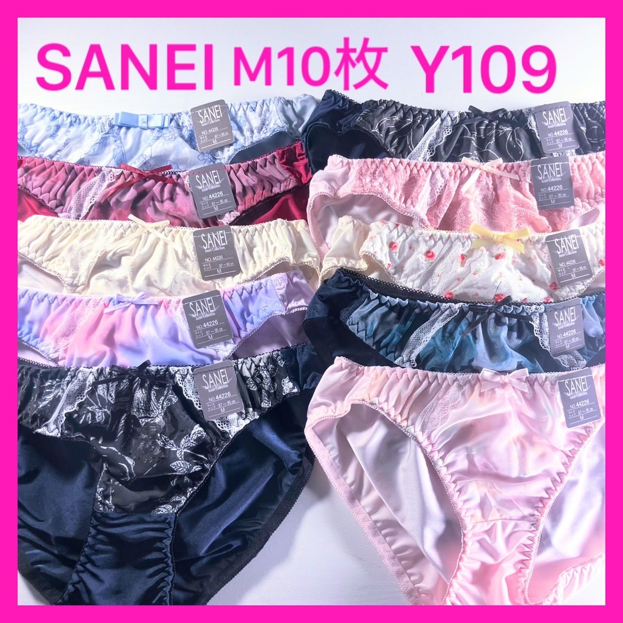 Y109 サンエイ トリコットショーツM10枚 可愛い レディースショーツ Mサイズ 新品 タグ付き レース お花柄 下着 女性用 ショーツ フルバックショーツ トリコットショーツ10枚まとめ売り SANEI