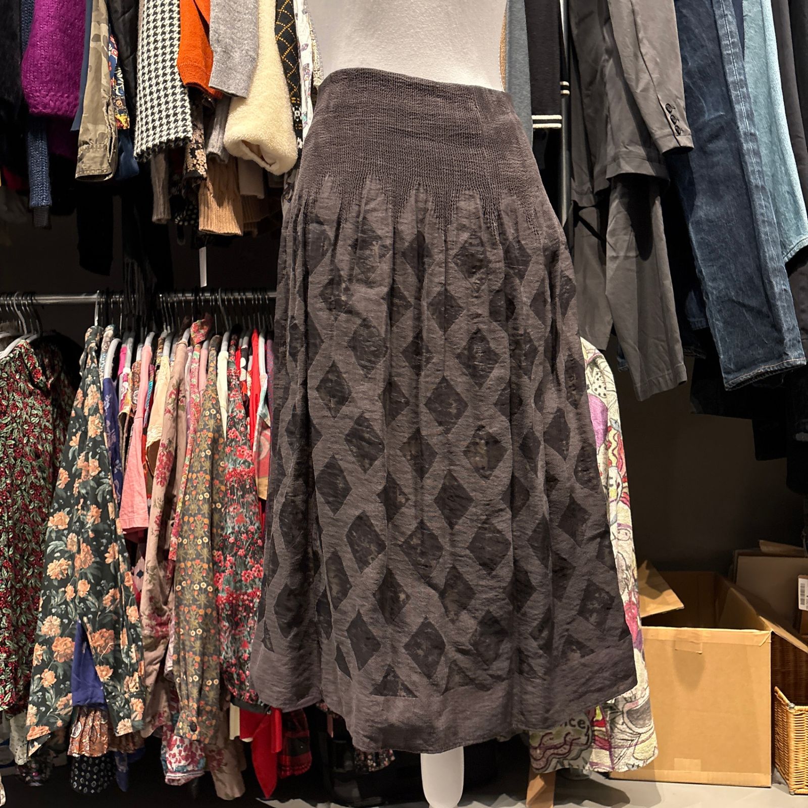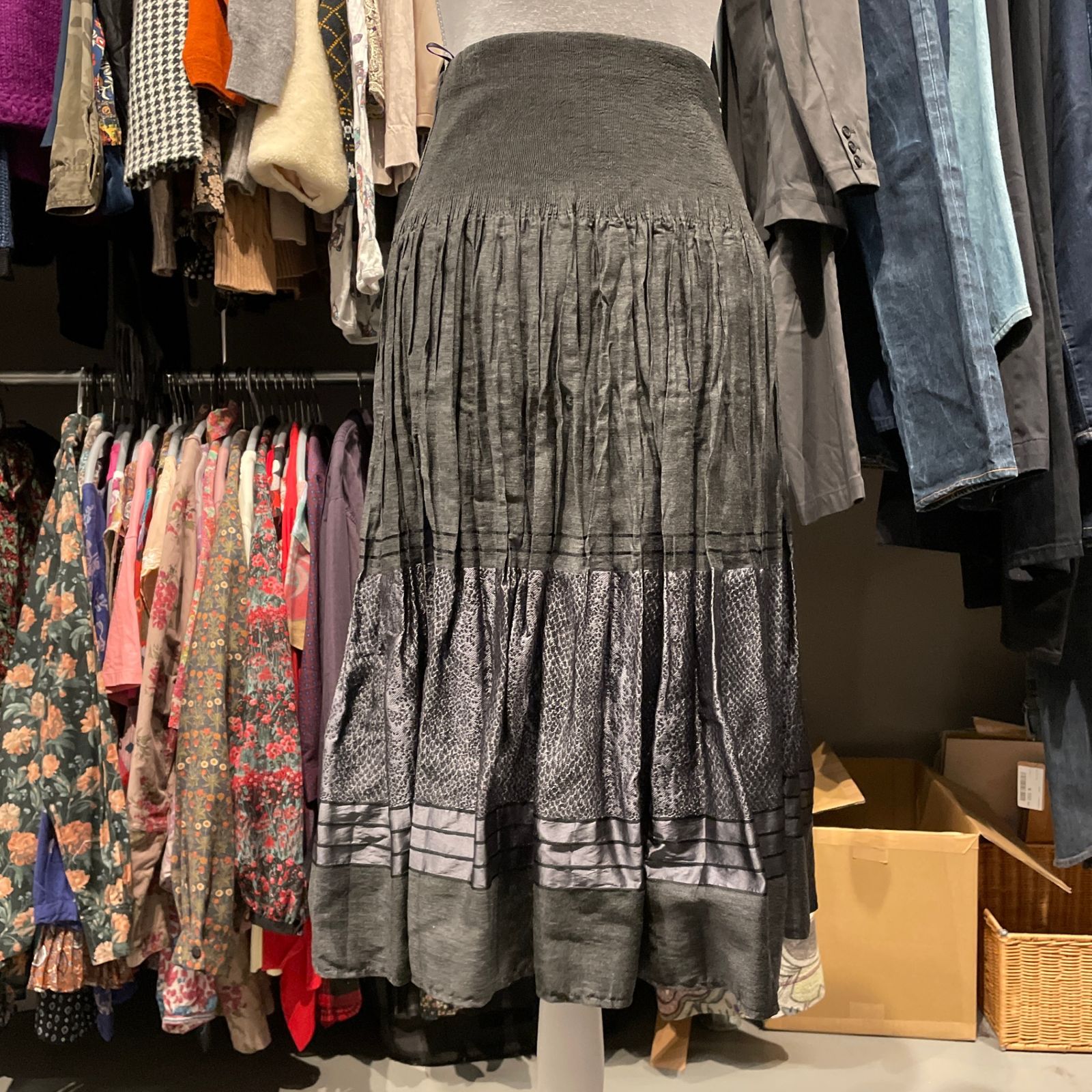@ キヨコタカセ KIYOKOTAKASE コムサ KT ギャバジン gabardine スカート グレー 灰色 総柄 プリーツ フレア お呼ばれ デート オフィスカジュアル 食事会 エレガント