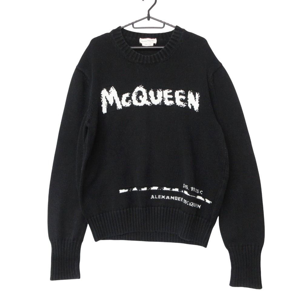 Alexander McQueen アレキサンダーマックイーン ニット セーター 長袖 クルーネック ロゴ トップス 626454 Q1WZL ブラック L メンズ 【中古】