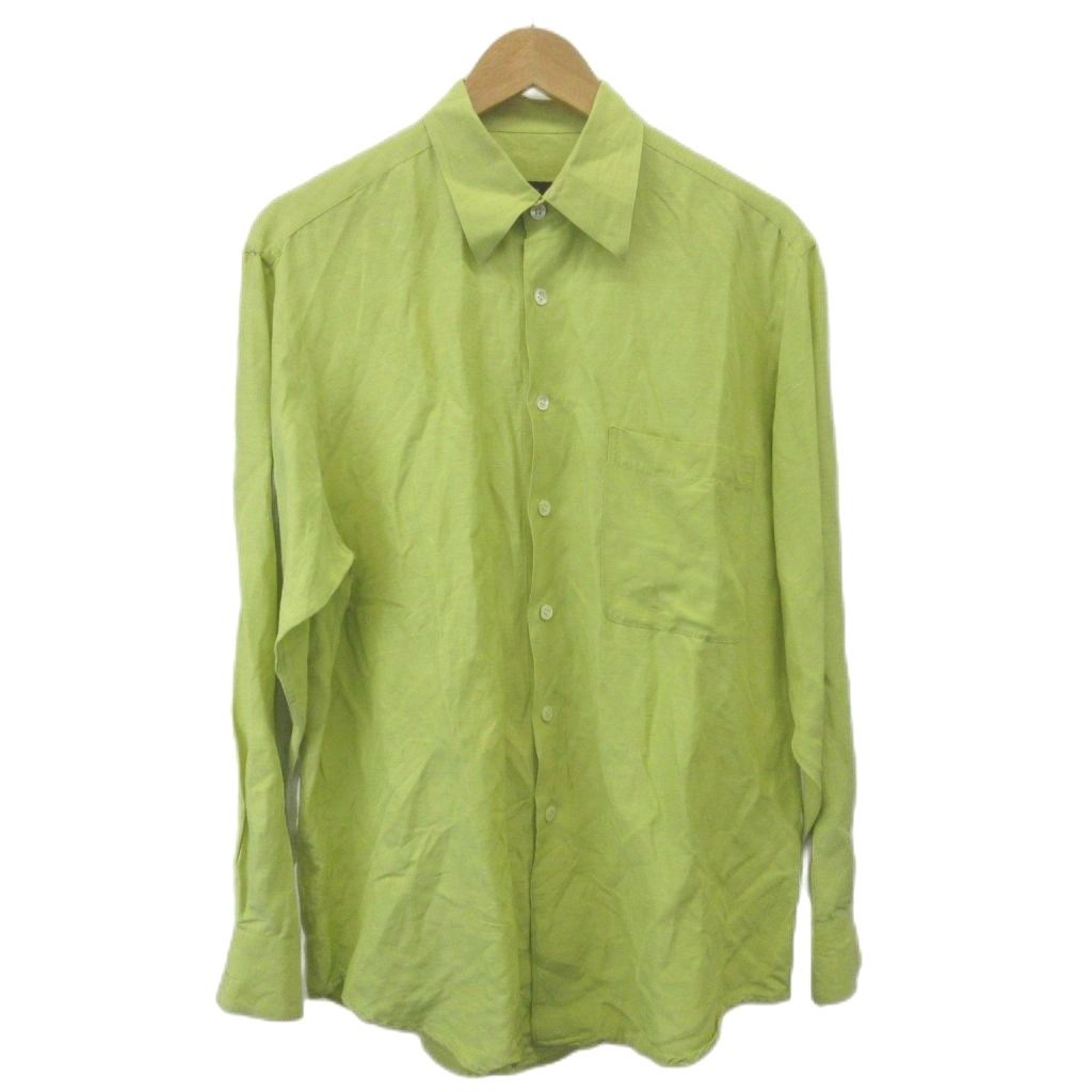 ヒューゴボス HUGO BOSS シャツ ブラウス 絹 シルク M 黄緑 ライトグリーン 無地 長袖 胸ポケット /NP ■GY99