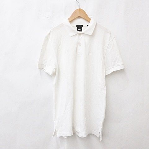 ヒューゴボス HUGO BOSS シャツ ポロシャツ 半袖 刺繍 コットン 白 オフホワイト M