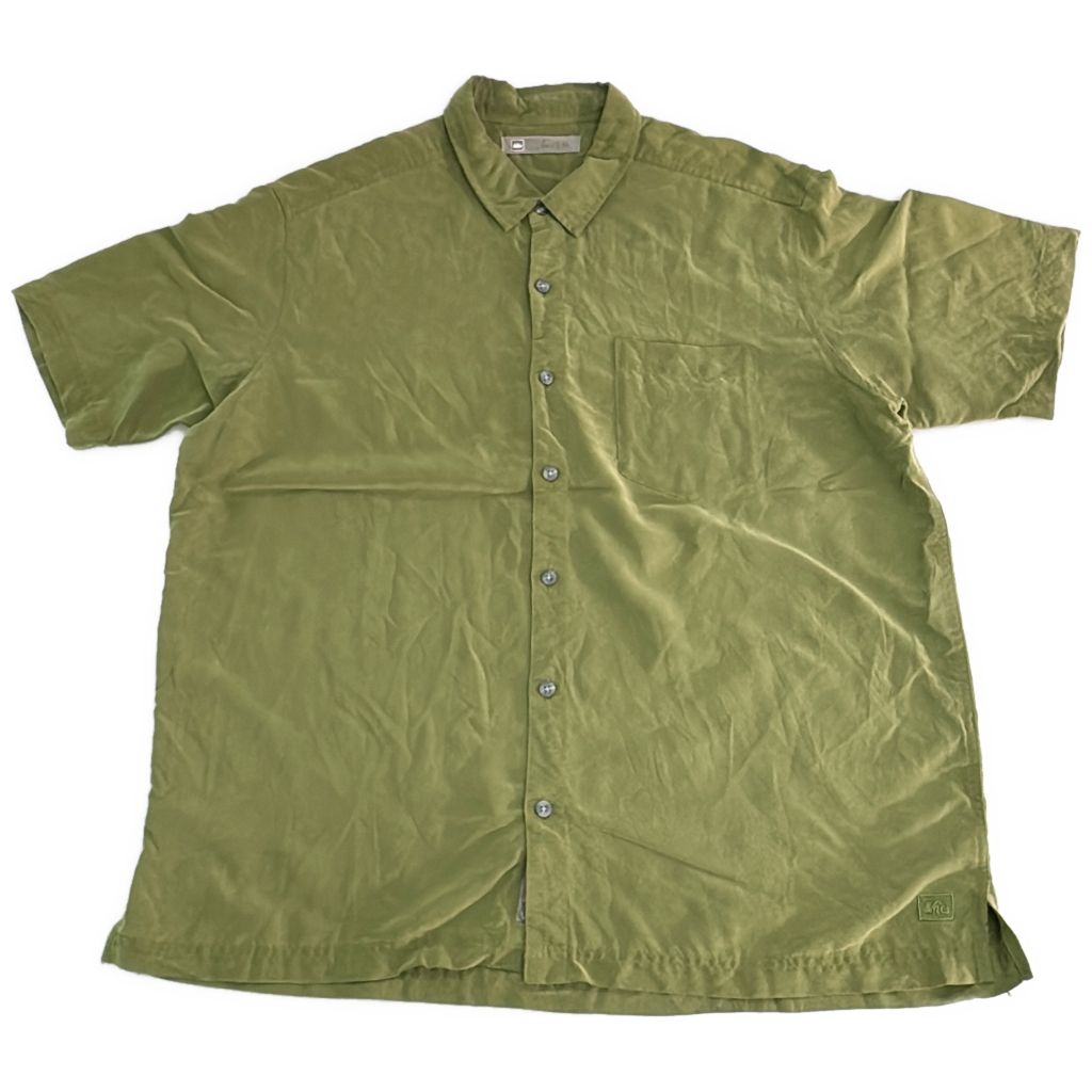 REI アール・イー・アイ レーヨンシャツ アウトドア オリーブ(メンズ XL)中古 古着 X9181
