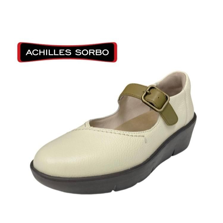 ストラップシューズ アキレスソルボ ASH 5900 オフホワイト/オリーブ レディース 厚底 スニーカー エレガント 仕事履き カジュアル