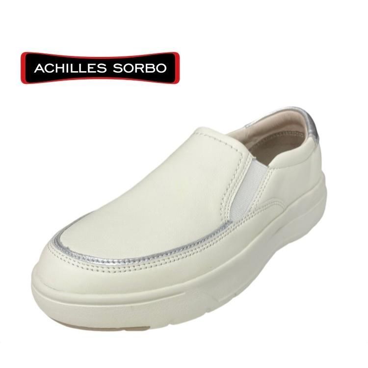 スリッポン アキレスソルボ ASH 6280 白 レディース 履きやすい 軽量 ローカット レザースニーカー 3E コンフォートシューズ