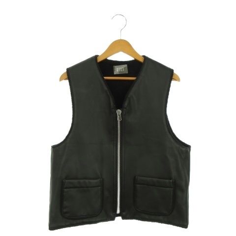 メンズビギ MEN'S BIGI フェイクレザーベスト M 黒 ブラック 裏ボア ジップアップ /AO7 ■GY99