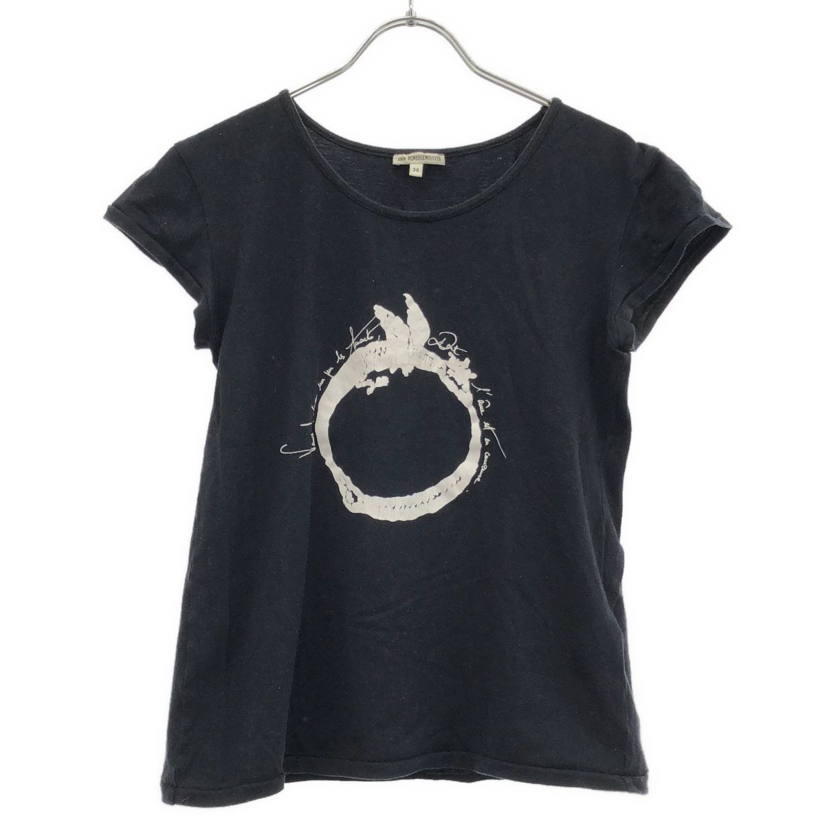 ANN DEMEULEMEESTER アンドゥムルメステール サークルプリントTシャツ ブラック 36