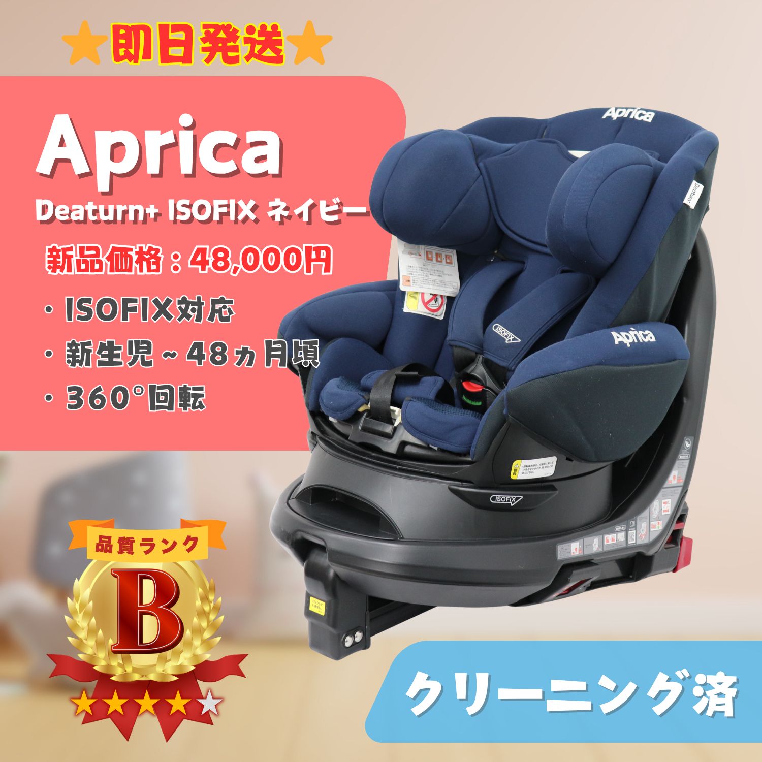 【即日発送】Aprica アップリカ Deaturn+ ディアターンプラス ネイビー ISOFIX チャイルドシート 360°回転 リクライニング機能付 安全基準適合品(Eマーク) ベビー用品 愛知県愛西市発 即日発送 ラクルベビー館
