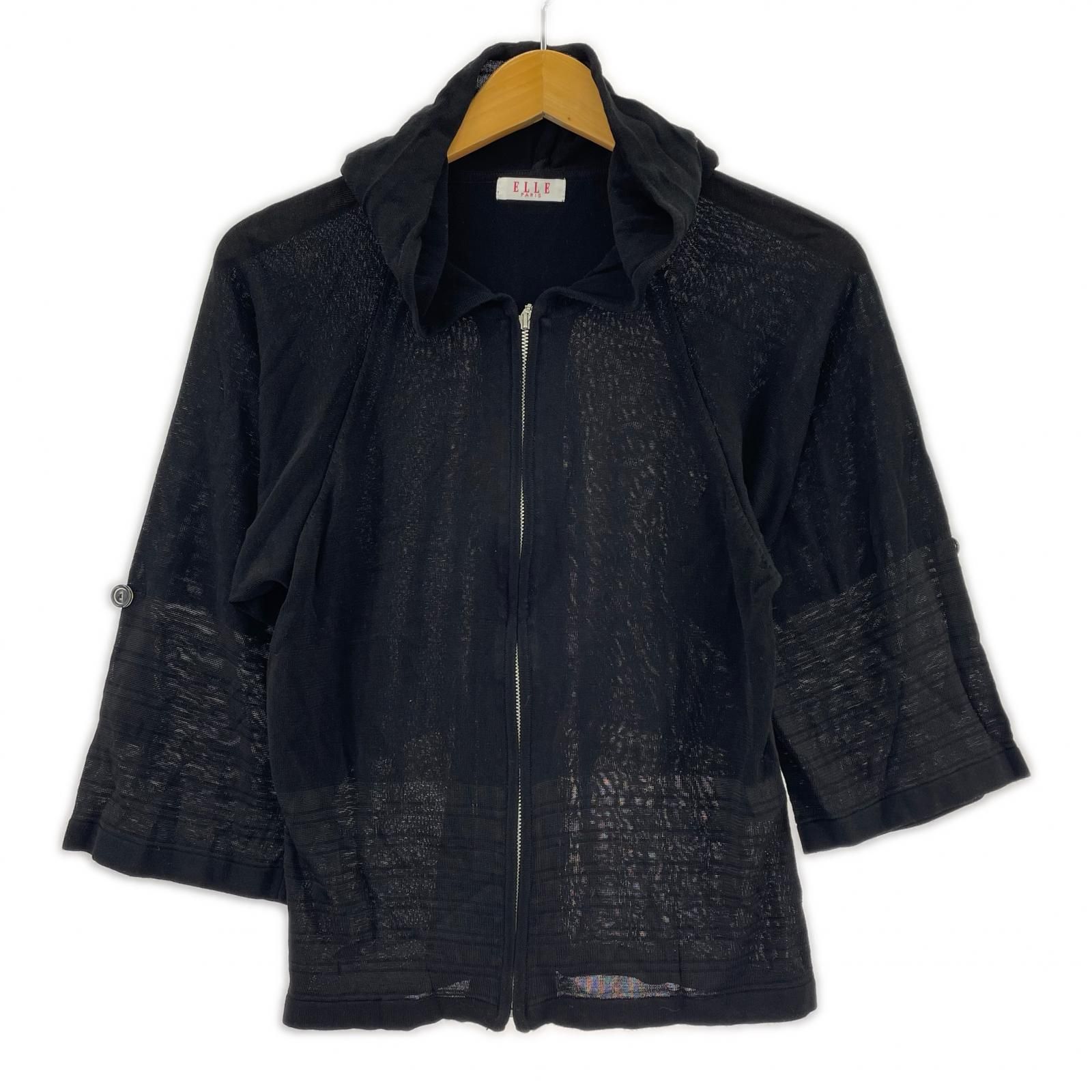 ELLE エル ジャガード編み レース使い カーディガン アイボリー 40 L