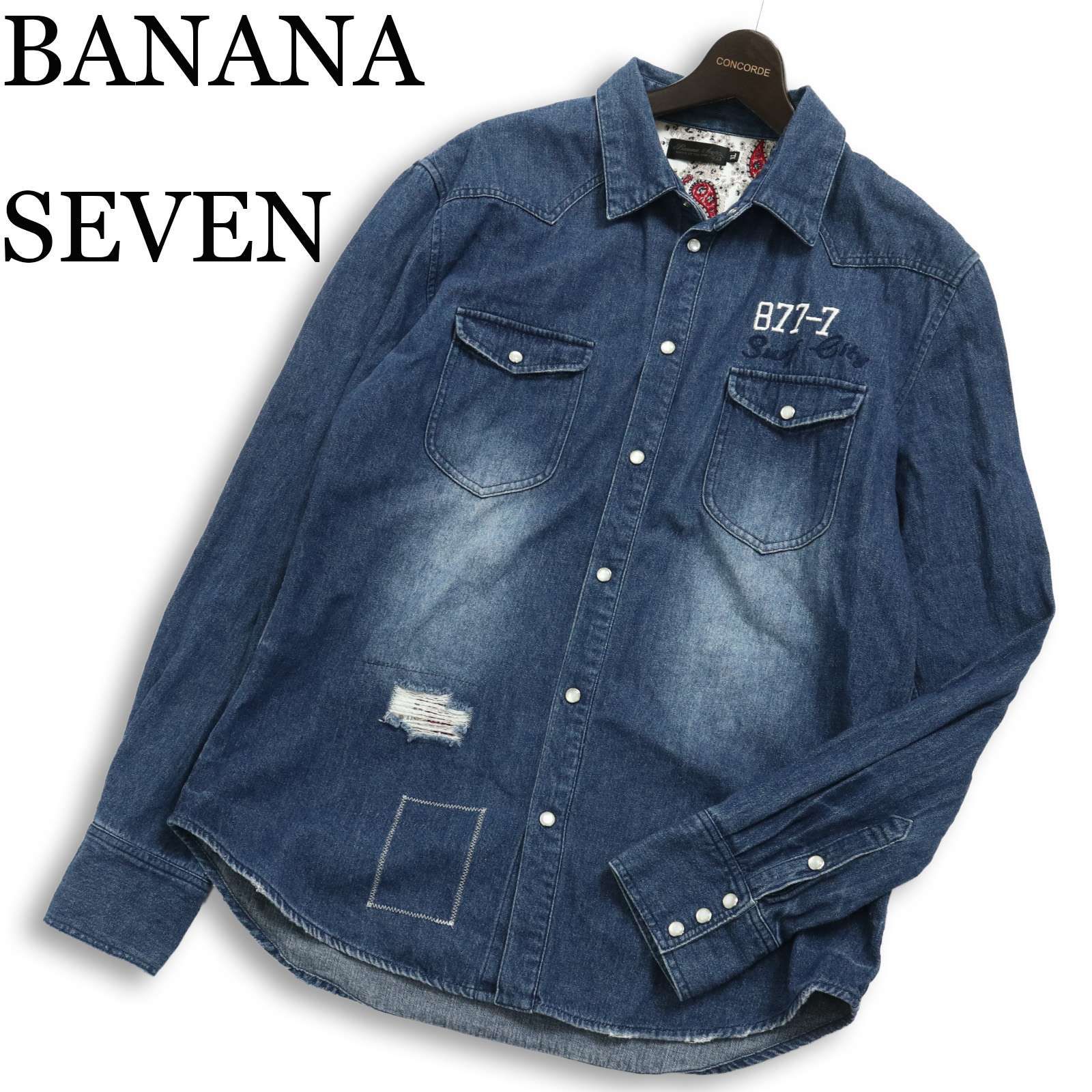 BANANA SEVEN バナナセブン 通年★ 長袖 USED加工 刺繍 パッチワーク デニム ウエスタン シャツ Sz.XL メンズ 大きいサイズ