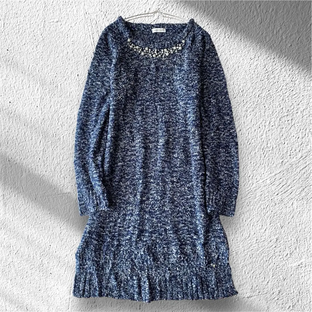 【イーハイフンワールドギャラリー】ニットワンピース 首元ビジュー 横スリット F