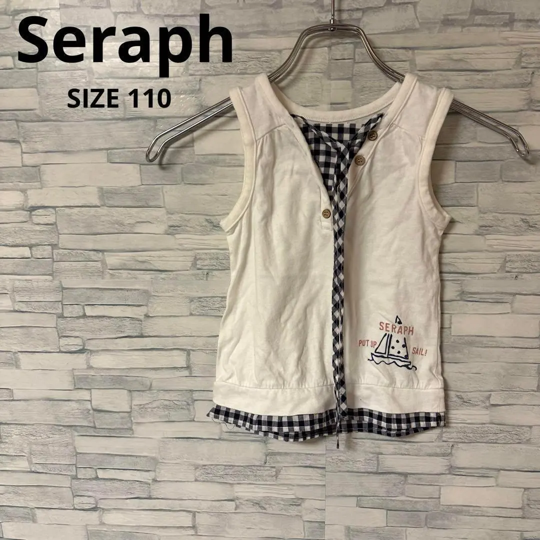 セラフ トップス ノースリーブ 【110】 ホワイト チェック柄 キッズ リボン