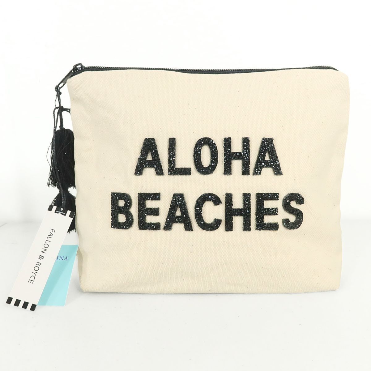 【新品】fallon&royce★ ALOHA BEACHES ビジュー飾り ポーチ 生成り帆布系 *ba127