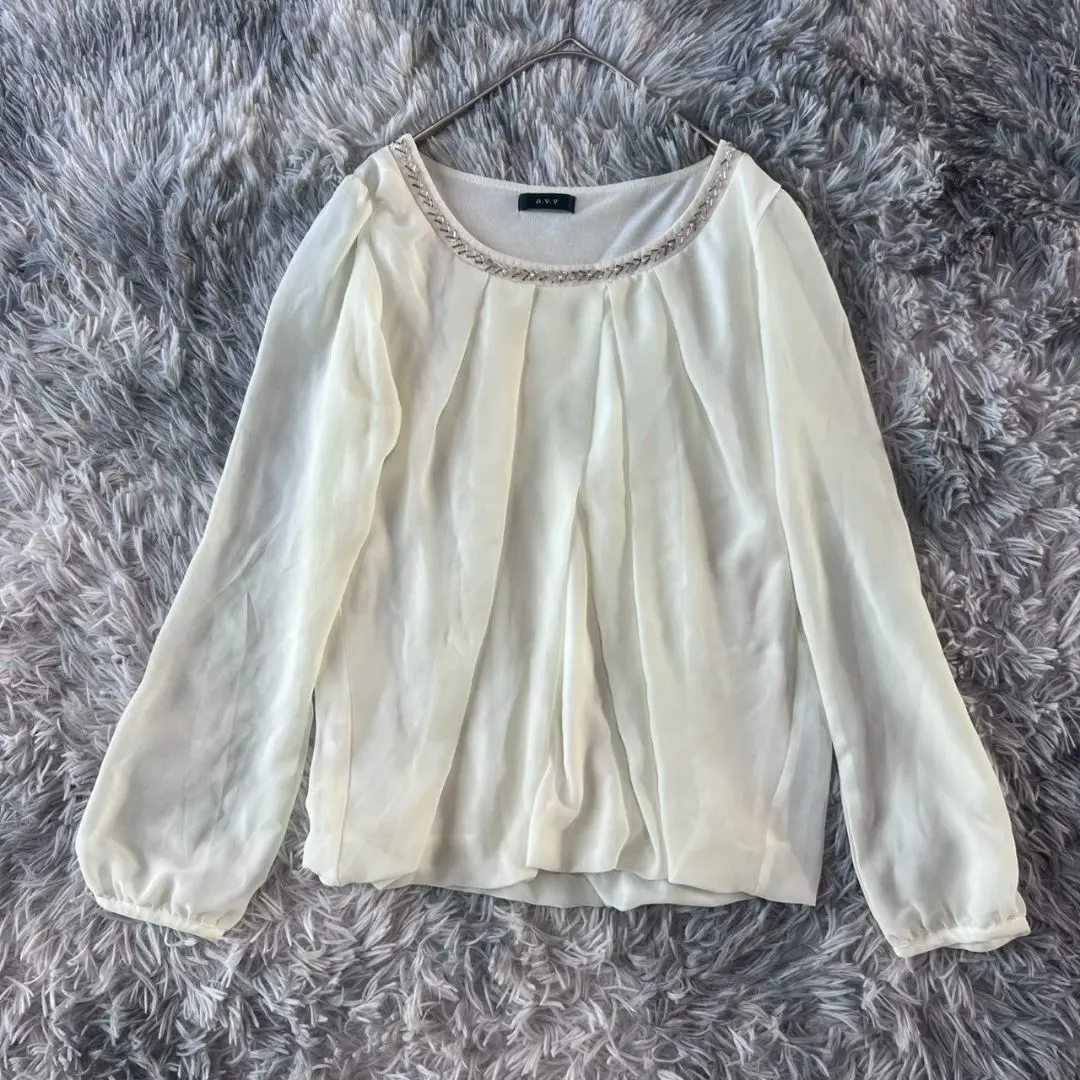 a.v.v アーヴェヴェ シフォンブラウス【М】アイボリー ビーズ装飾 上品