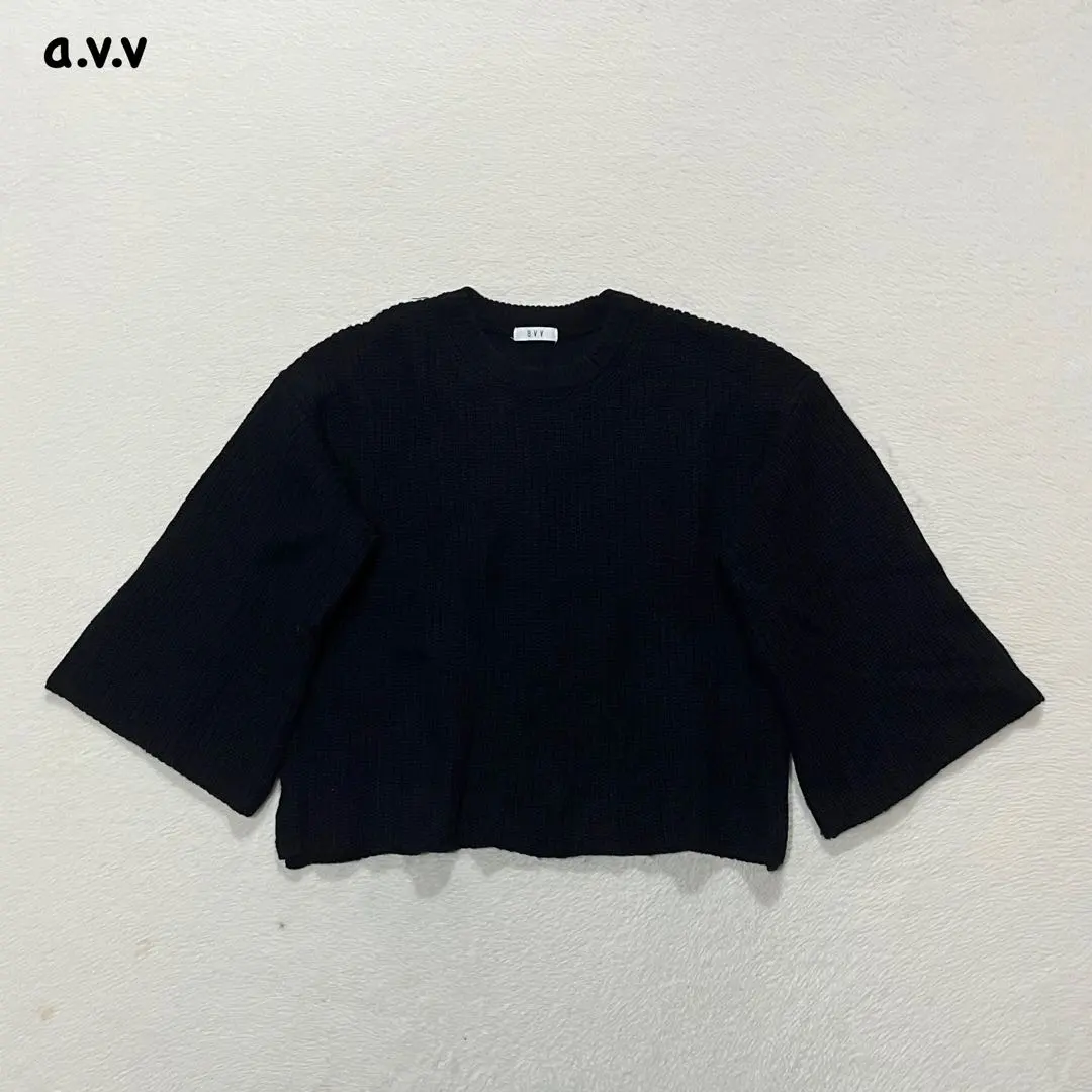 t2333 【アーヴェヴェ】 レディース トップス 黒ニット 7部丈 カジュアル