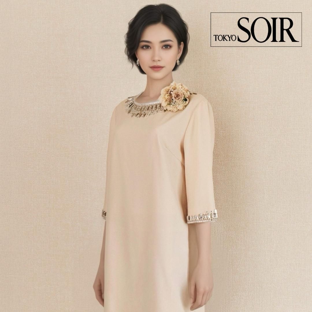 INDIVI インディヴィベージュ 半袖 ワンピース スクエアネック