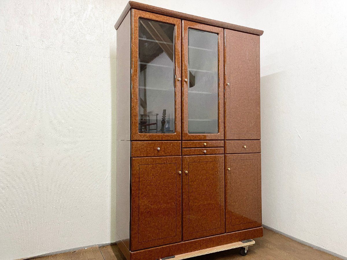 ●九州 大川家具 バーズアイメープル 食器棚 カップボード キャビネット 飾り棚 モダン 高級家具 (貝1544)