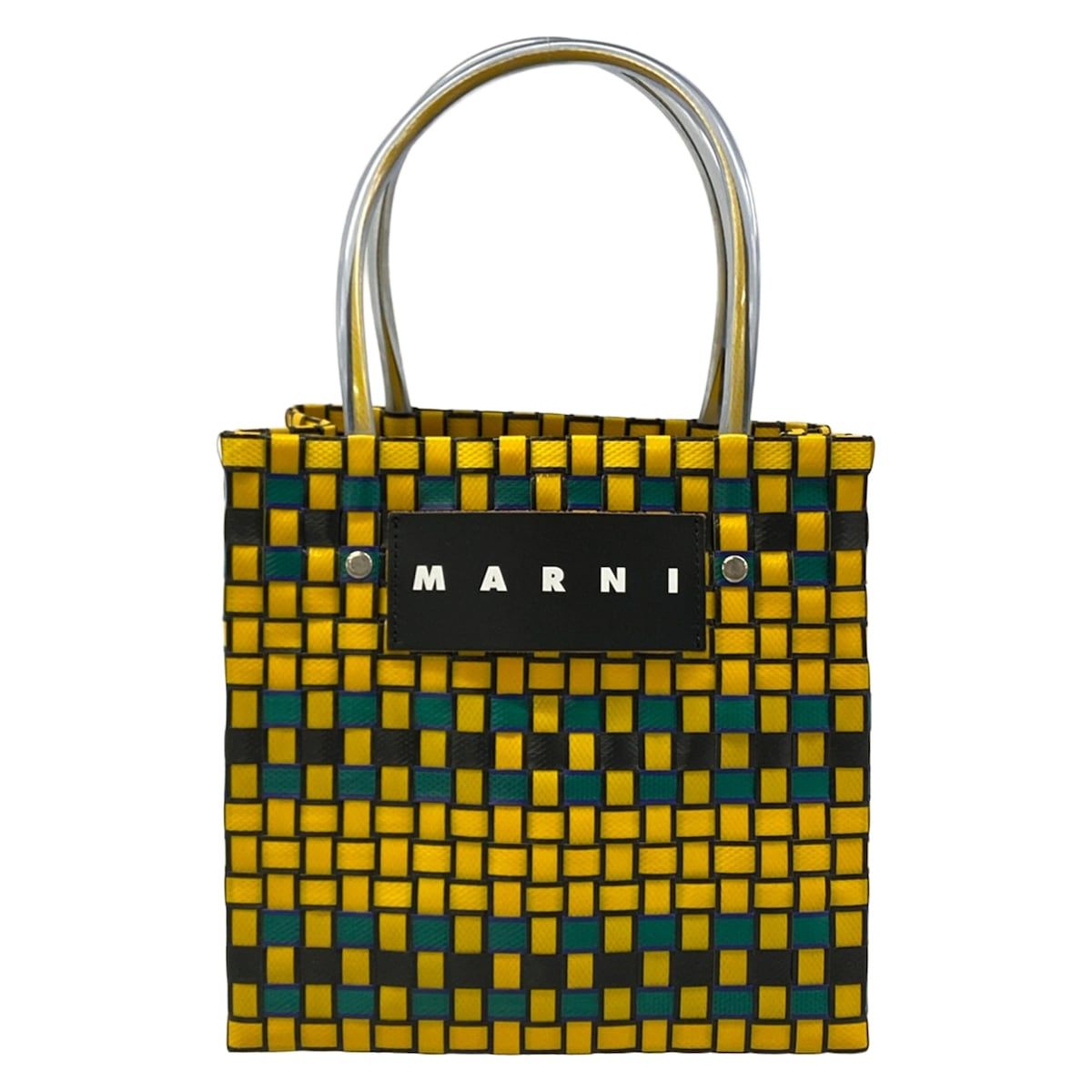 マルニ トートバッグ ミニウーブンショッピングバッグ SHMH006A00 イエロー×ダークグリーン×マルチ かごバッグ/マルニマーケット レザー