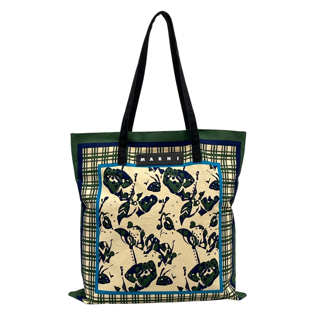 マルニ トートバッグ バンダナトート SHMH0046A0T0000 アイボリー×ダークグリーン×マルチ マルニマーケット/千總コラボ コットン、レザー