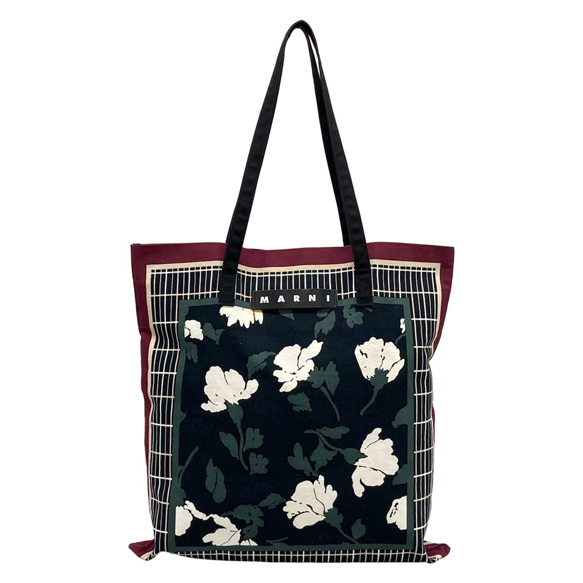 MARNI(マルニ) トートバッグ バンダナトート SHMH0046A0T0000 黒×ボルドー×マルチ マルニマーケット/千總コラボ コットン、レザー