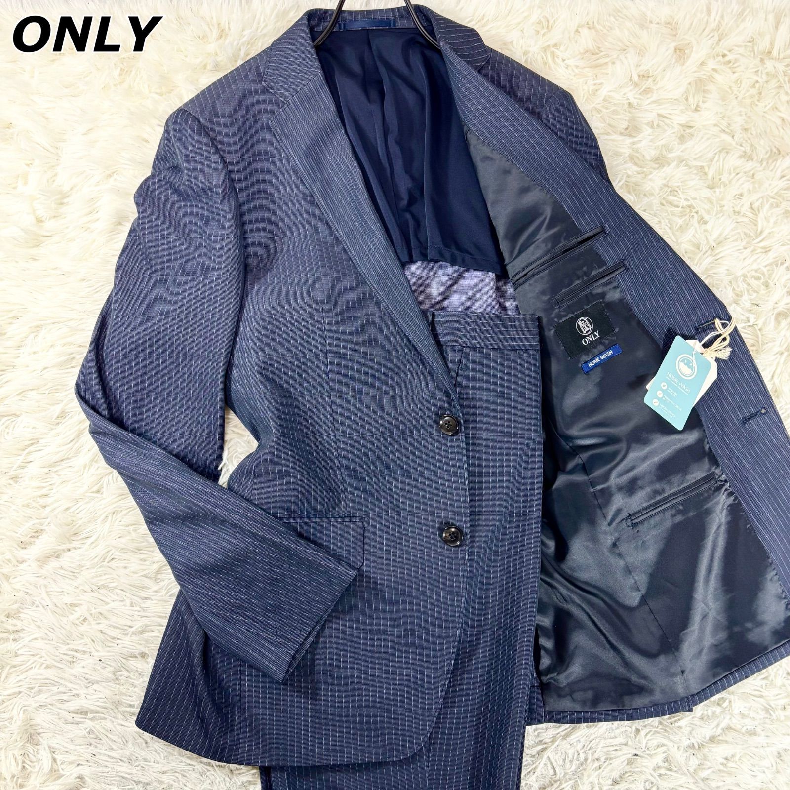 【未使用級】オンリー ONLY スーツ セットアップ トラベルスーツ ビジネススーツ ストレッチ 伸縮生地 洗える 新品タグ付き ストライプ 背抜き