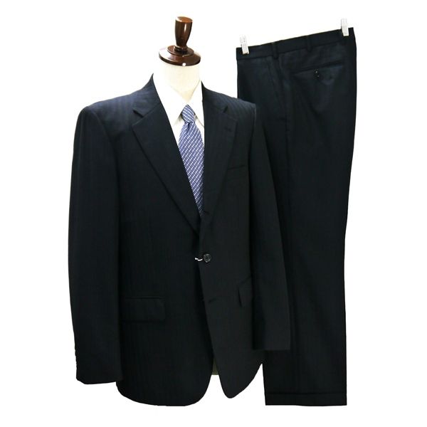 DAIMARU 段返り 3つボタン シングルスーツ 袖口4つボタン AB8 XL ダークネイビー ストライプ ワンタック 春秋冬 8787858 6ND036 【送料無料】【中古】【メンズビジネス】202604