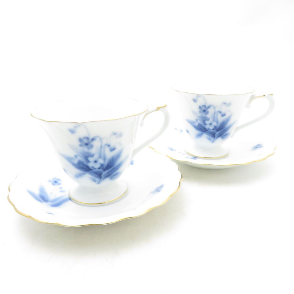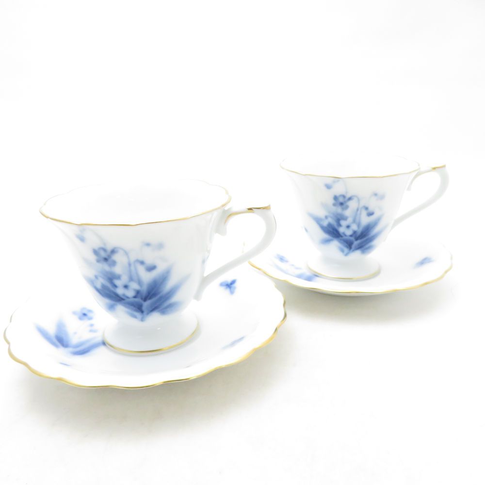 美品 OKURA 大倉陶園 ブルーバイオレット コーヒーカップ&ソーサー 2客 ペア すみれ スミレ 花 金彩 碗皿 珈琲 SU13801X1
