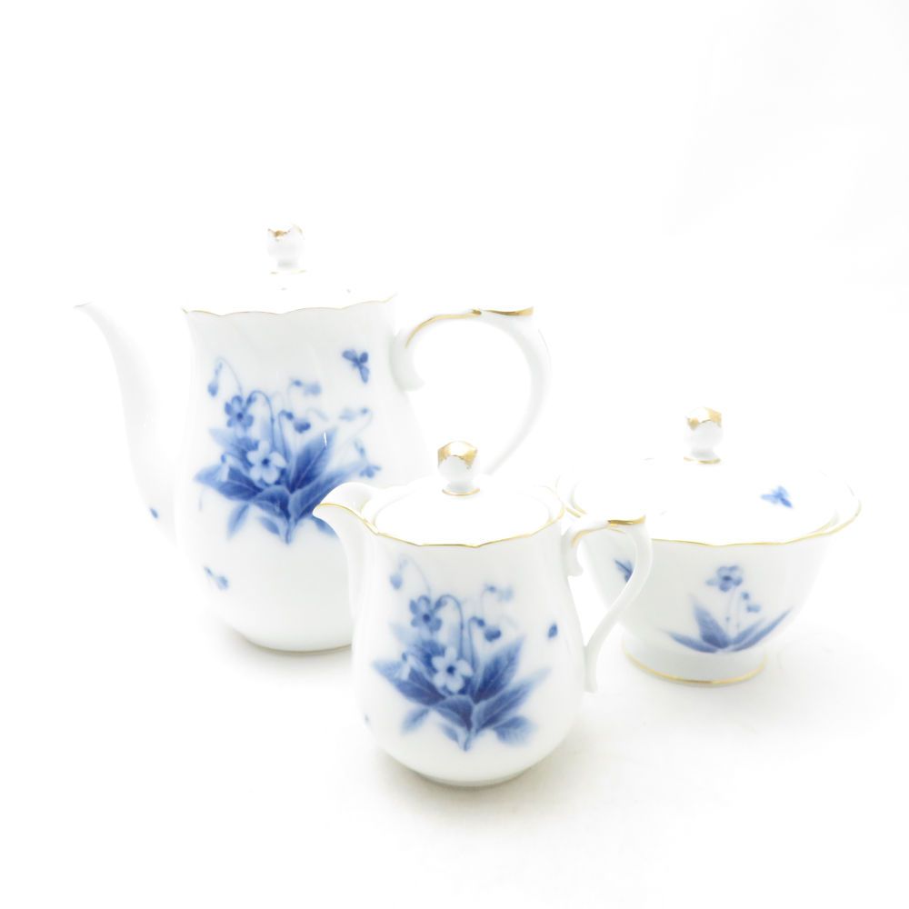 OKURA 大倉陶園 ブルーバイオレット ポット クリーマー シュガーポット 3点 セット 茶器 珈琲 砂糖 クリーム ミルク 花 SU13804X1