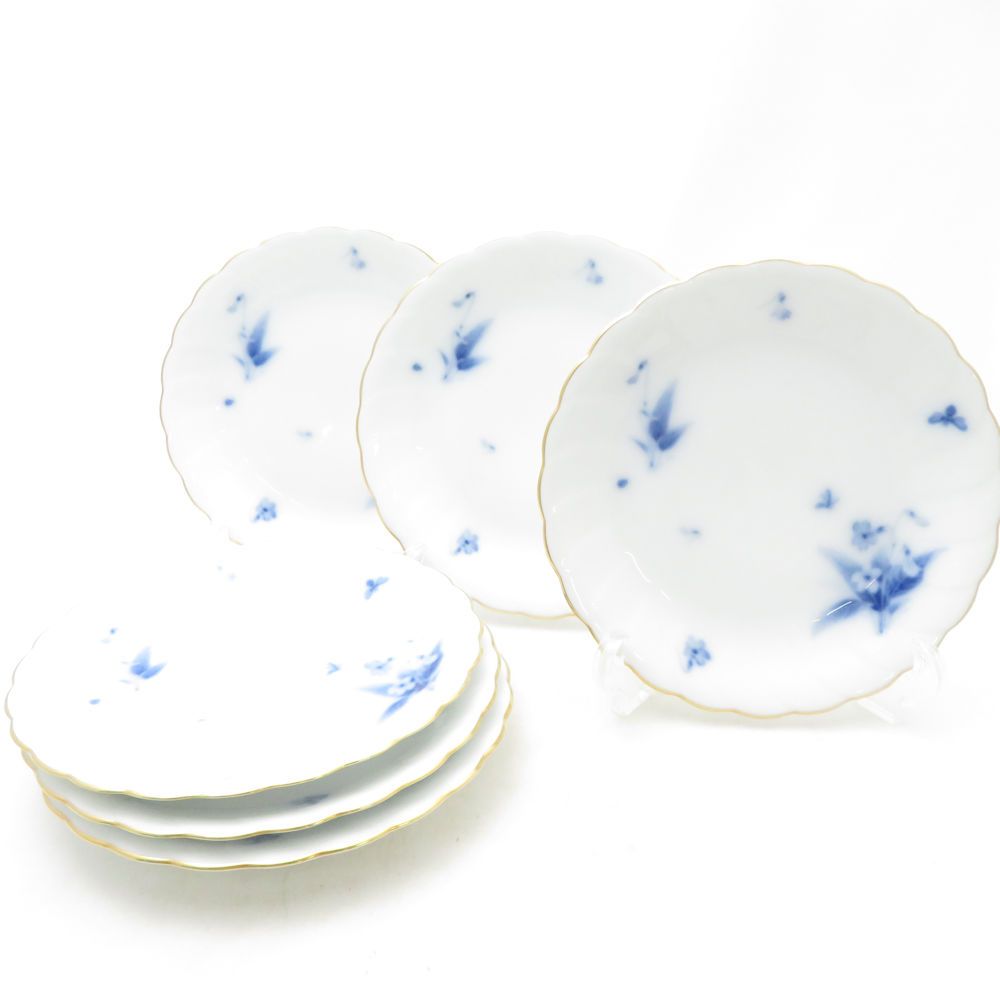 美品 OKURA 大倉陶園 ブルーバイオレット 中皿 6枚 18cmプレートセット すみれ スミレ 花 金彩 SU13803X1