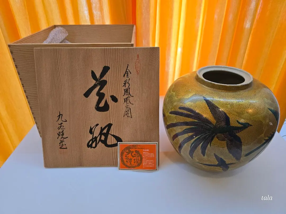 九谷焼 花瓶 金彩鳳凰の図 豪華 飾り壺 花器