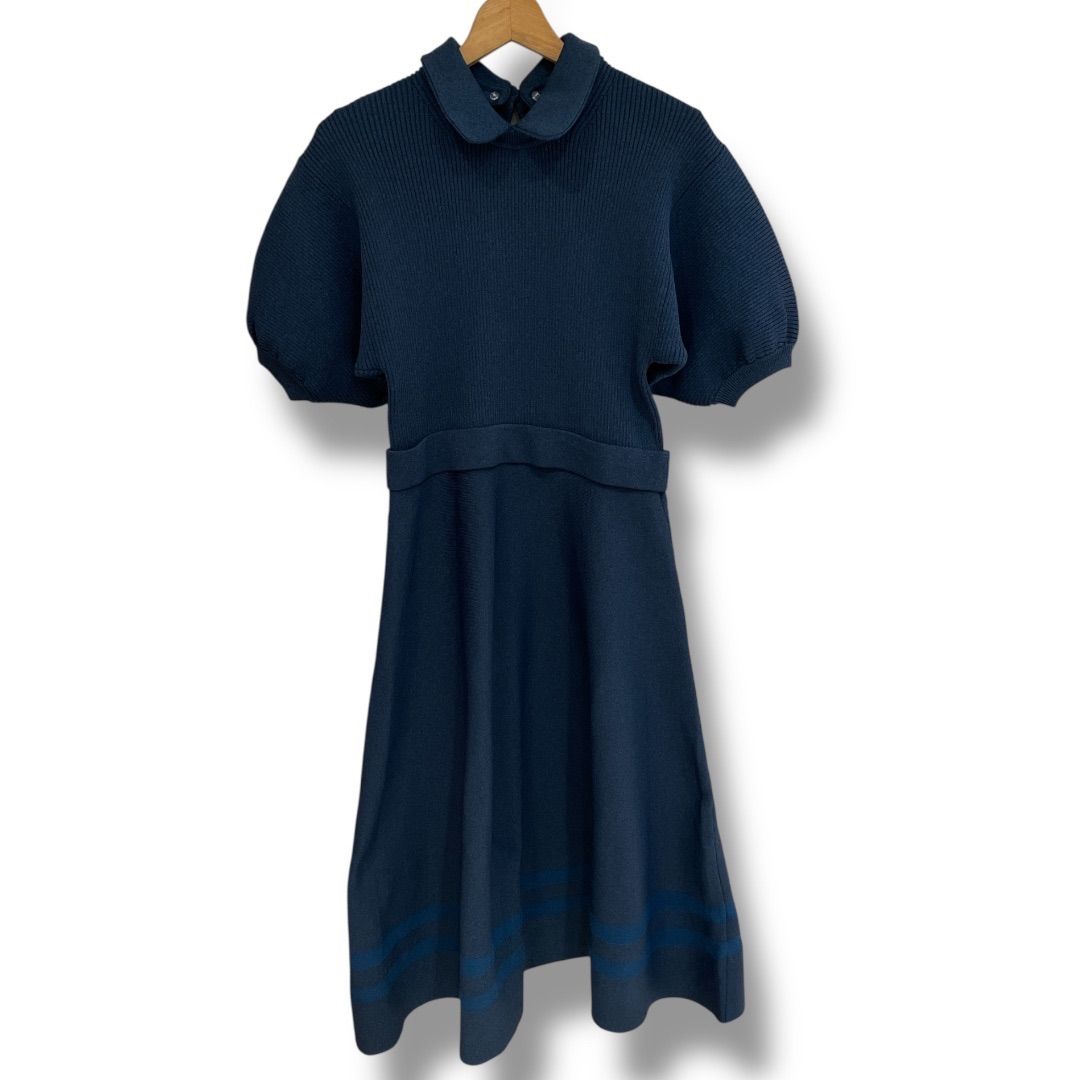銀座マギー I wonder if... ギンザマギー ニットワンピース ロングワンピース パフスリーブ 半袖 襟取り外し可能 2way フィット&フレア ダークブルー サイズ表記なし レディース 夏 ゴーゴー古着セントラルパーク名古屋店No.2074