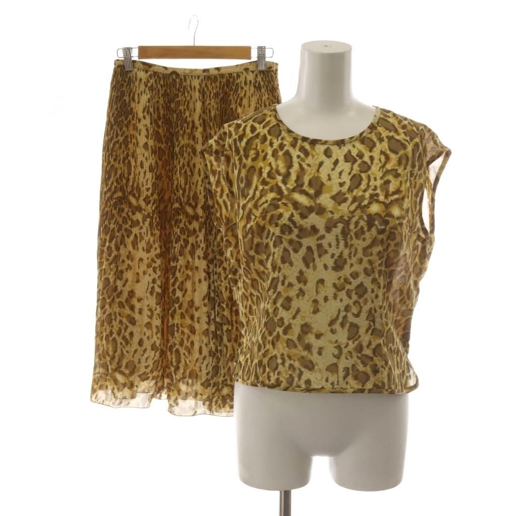 銀座マギー セットアップ ノースリーブブラウス シャツ フレアスカート ロング 9 ベージュ アニマル柄 シフォン /RR ■MU