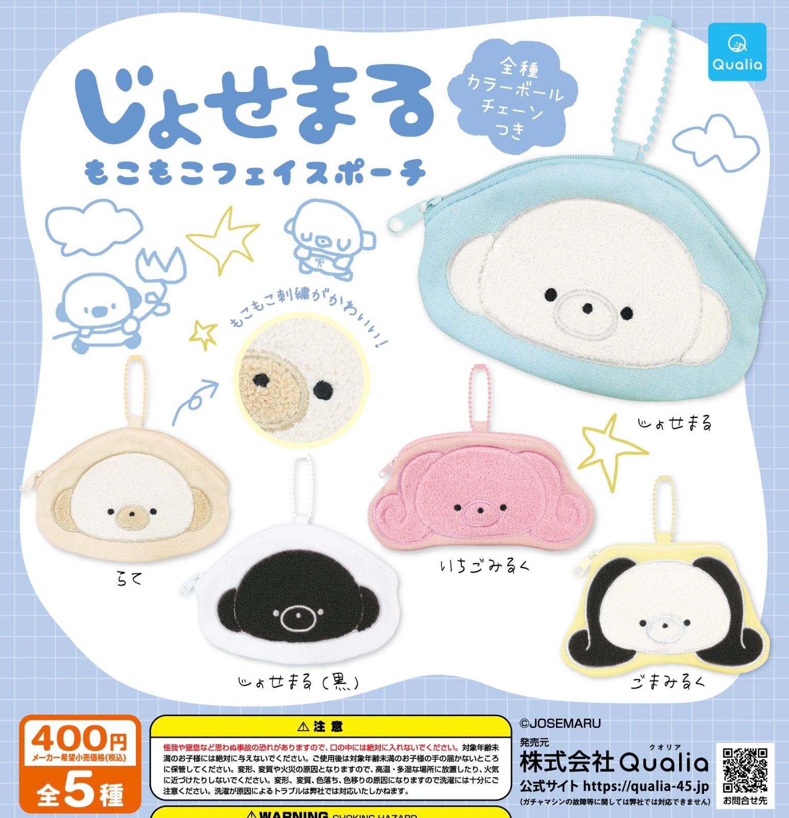 じょせまる もこもこフェイスポーチ 全5種 ガチャ