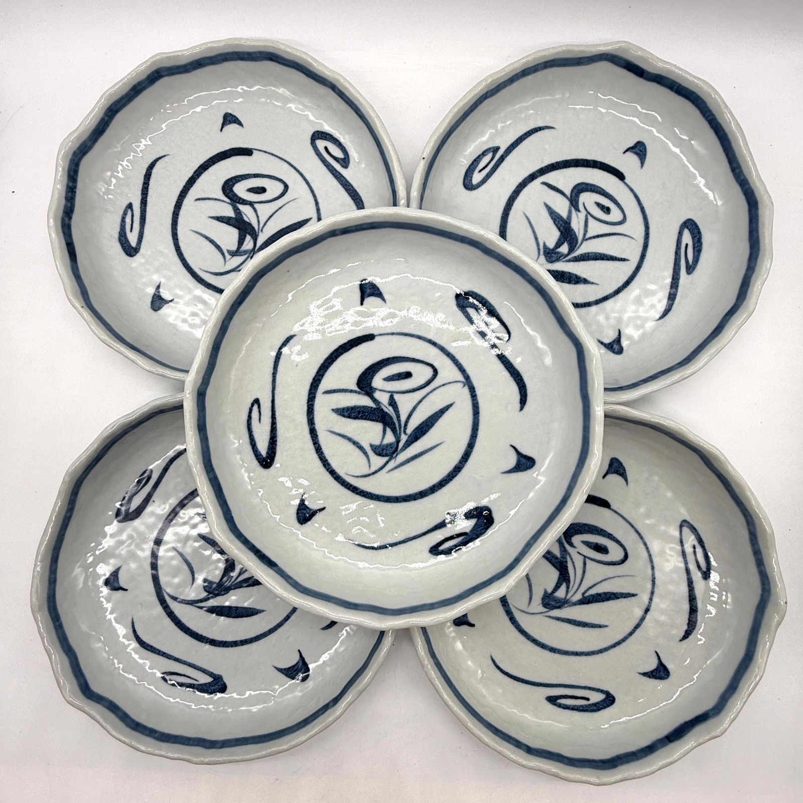美濃焼 布目りんか 輪花 小皿 ターコイズ 4枚