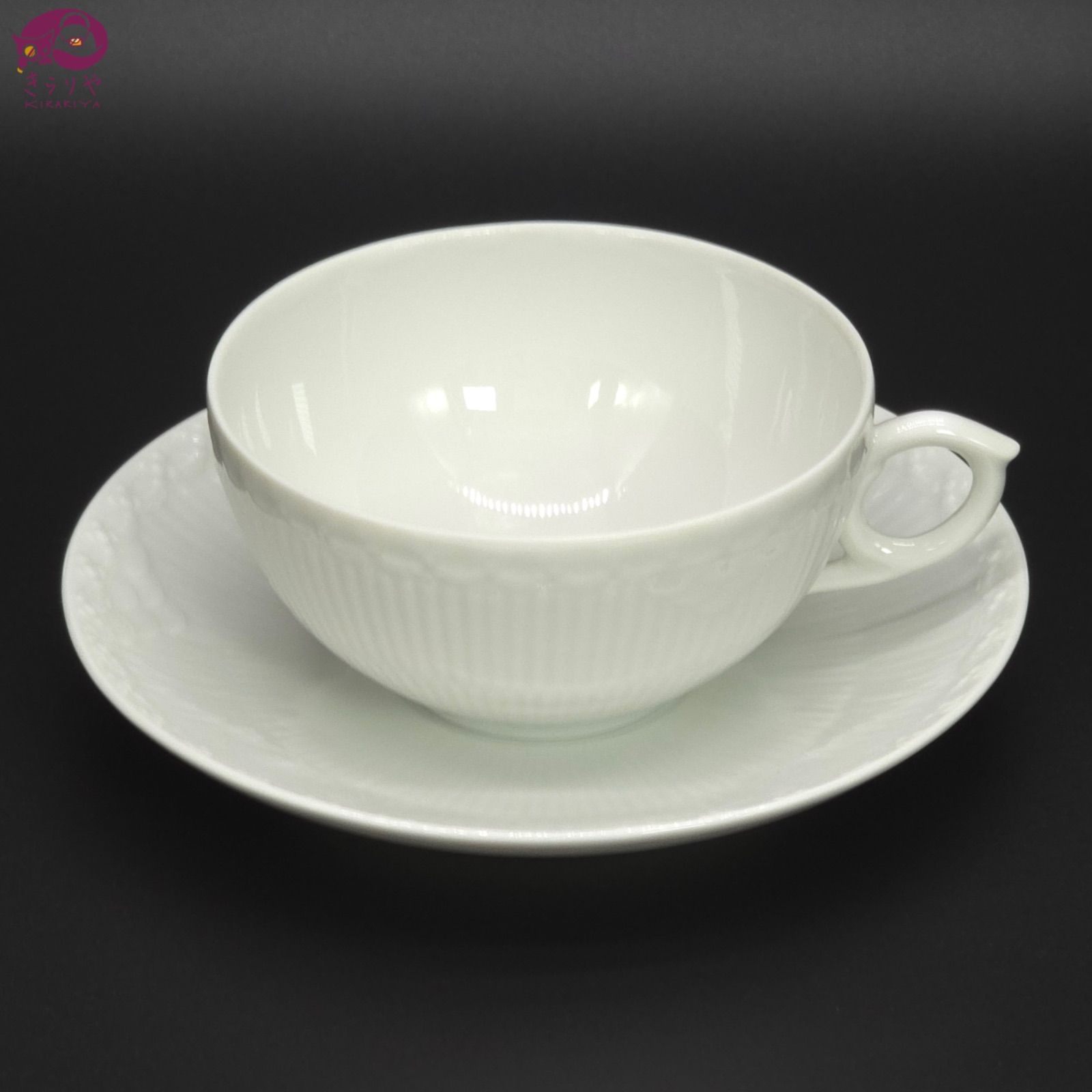 ROYAL COPENHAGEN ロイヤル コペンハーゲン ホワイトフルーテッド ハーフレース ティーカップ&ソーサー セット シェイプ 081 / 082 箱 冊子