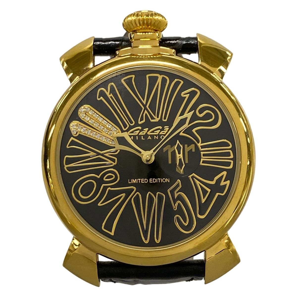 GAGA MILANO(ガガミラノ) 腕時計美品 マヌアーレ46 5080.NJ.02D メンズ Neymar Jr コラボ/世界110本限定/ダイヤモンド 黒