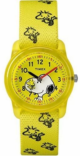 TIMEX ピーナッツ アナログ 腕時計 黄色 蛍光 イエロー 時計 ゴム 布 柄 タイメックス 保証書 スヌーピー カジュアル ウォッチ TW2R41500