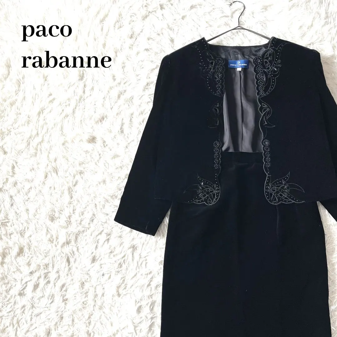 【希少】パコラバンヌ ヴィンテージセットアップ ベロア刺繍 黒 9AR 日本製