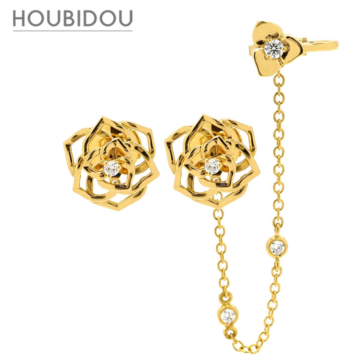 ピアジェ PIAGET ピアス ピアジェローズ アシンメトリー ダイヤ クリップチェーン付 ピンクゴールド 750 18K PG PGG38U0077 【箱】【中古】