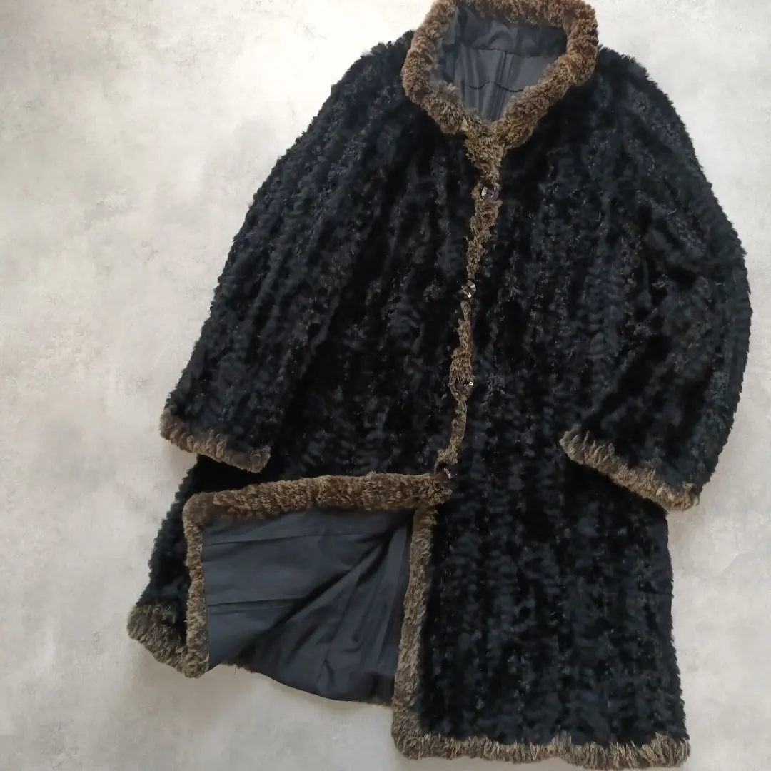美品 2way リアルファー シルク 絹 リバーシブル ロングコート ラビット