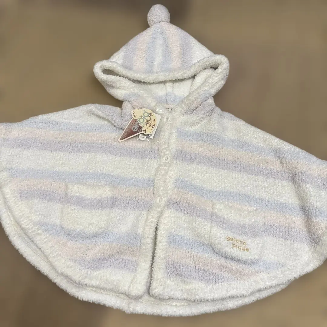 ジェラートピケベビーポンチョ 80-90 ストライプ