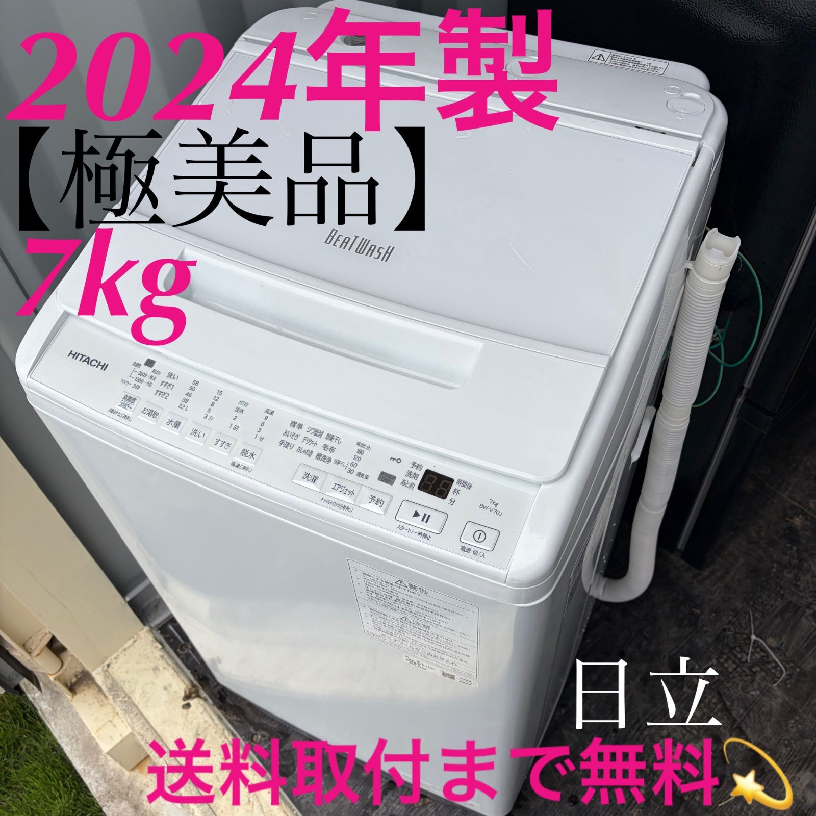 取付無料!日立ビートウォッシュ 高性能おしゃれホワイトインテリア7kg洗濯機